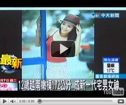 只有12歲的越南嫩模黎黃寶珍(LeHoang Bao Tran)172公分,擁有三圍32、22、34的傲人身材,網路上瘋傳她露底褲、內衣的照片,大家都不相信她只有12歲,黎黃寶珍日前為一家遊戲公司代言時表示,其實她就跟同齡的其他女孩一樣,只是「看起來」比較成熟。